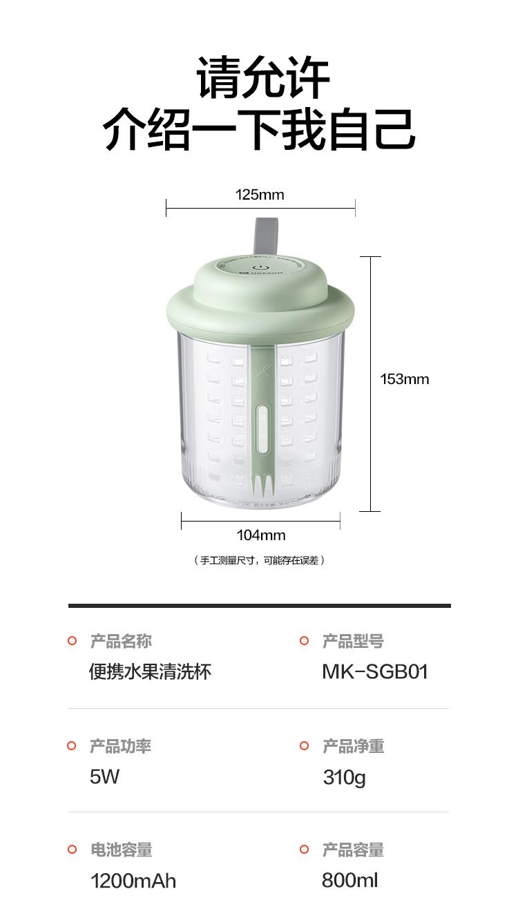 MOKKOM磨客便携水果清洗杯豆蔻绿MK-SGB01-G