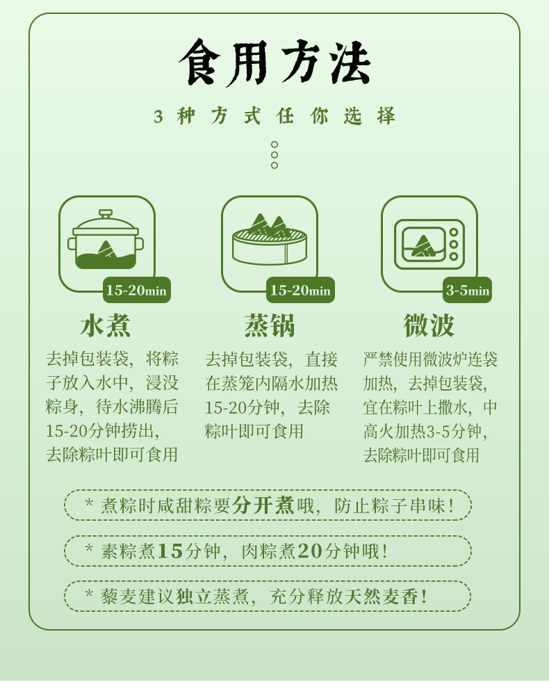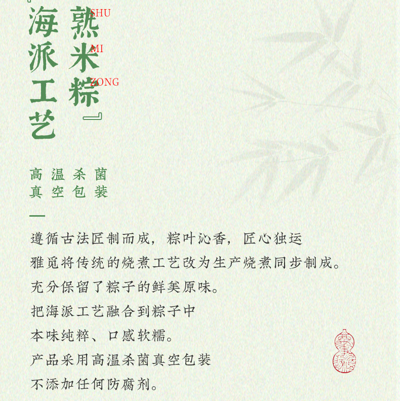 1、食材甄选安徽怀远糯米,颗粒饱满莹润,蒸后口感轻糯绵软、香润不粘牙,米香纯粹悠长;搭配野生高山箬叶,叶厚清香,将山野自然清香沁入粽米,粽叶香与米香交融