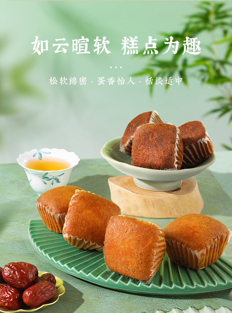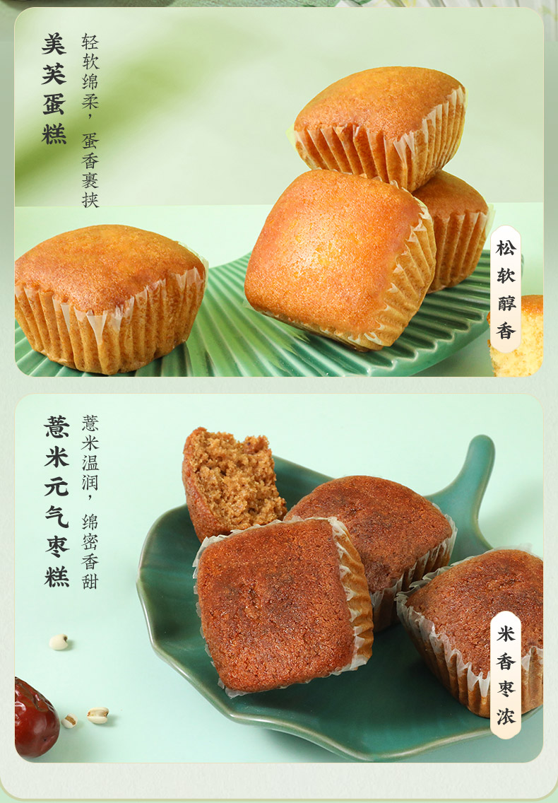 3、美芙蛋糕松软绵密、奶香清甜,口感轻盈不腻;薏米元气枣糕温润扎实、枣香浓郁,软糯有嚼劲,甜香温和。