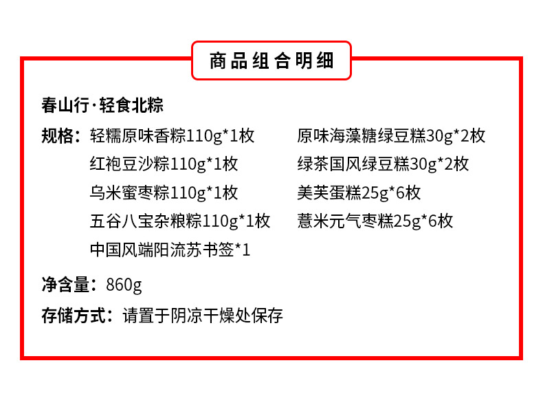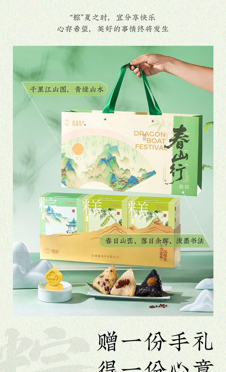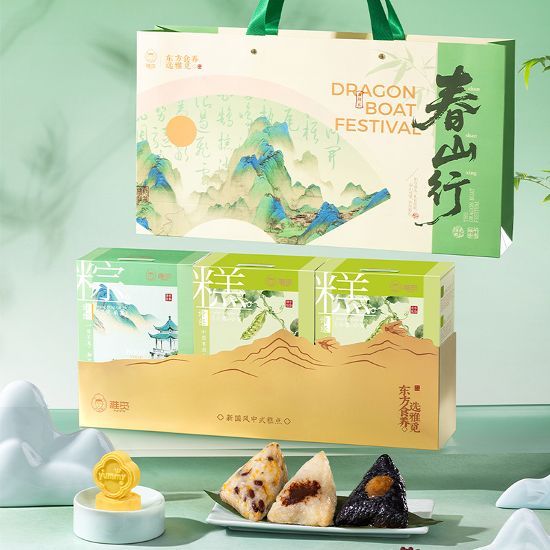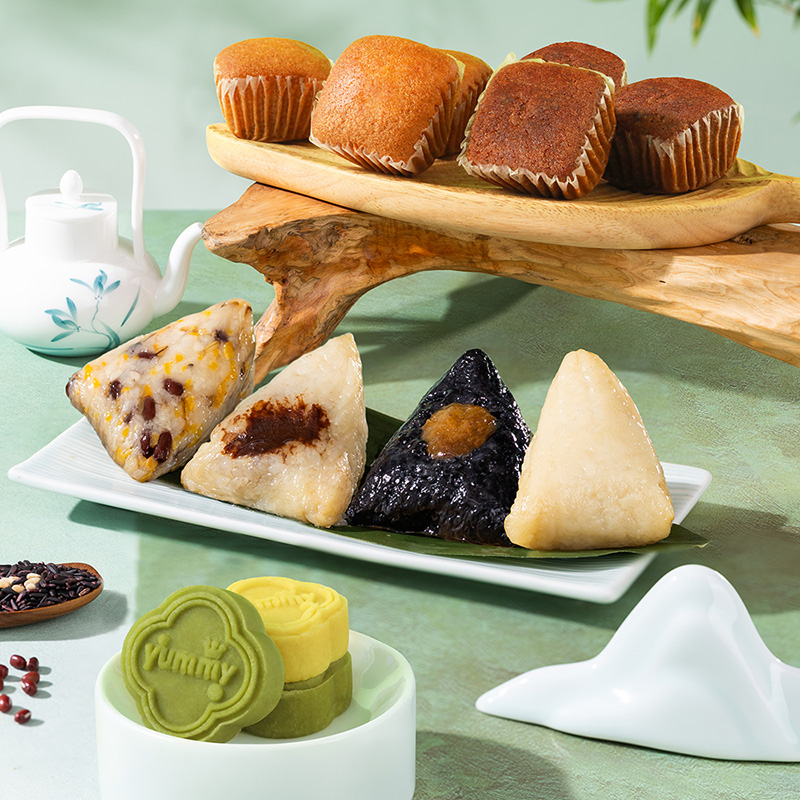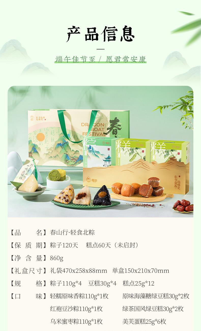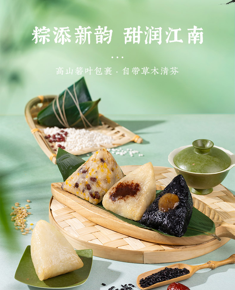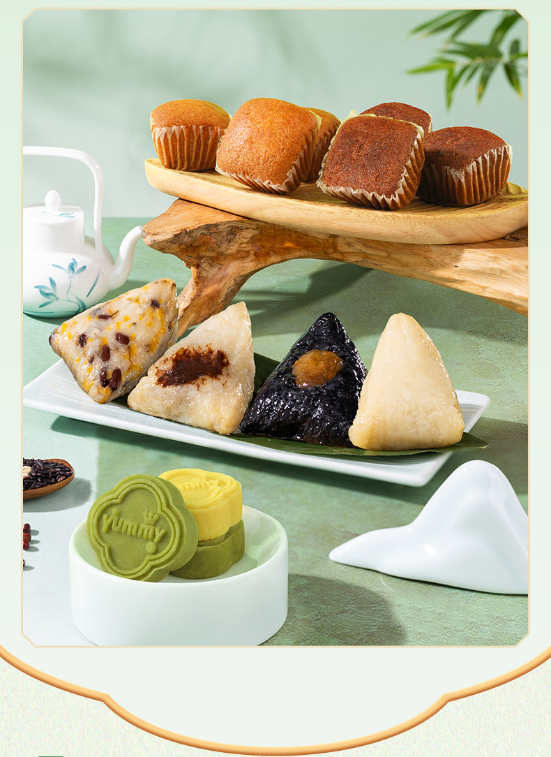 产品卖点:4味素粽+2味豆糕+2味蛋糕,清甜与软糯相融,香润不腻,口感层次丰富