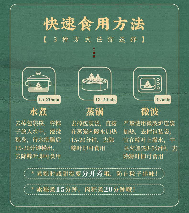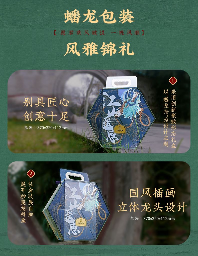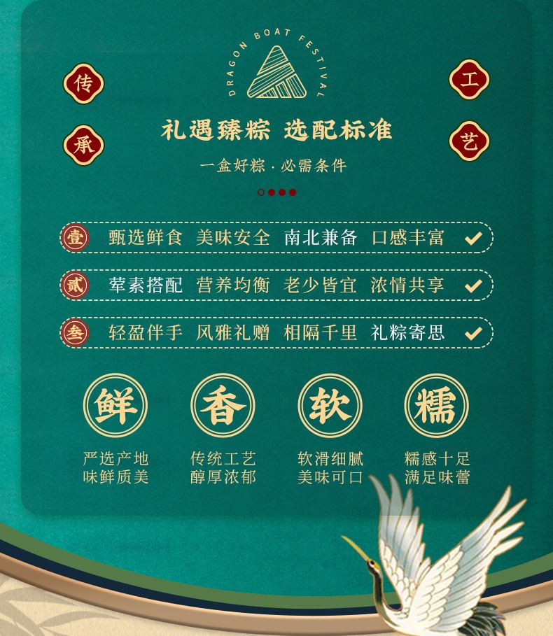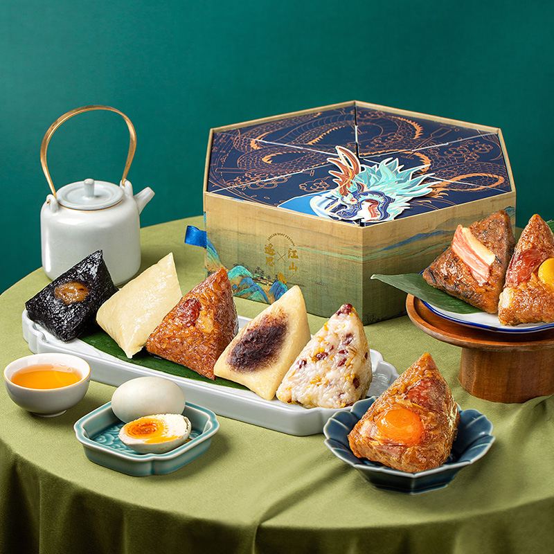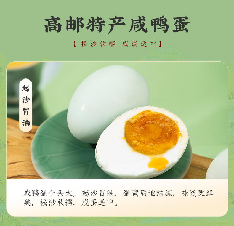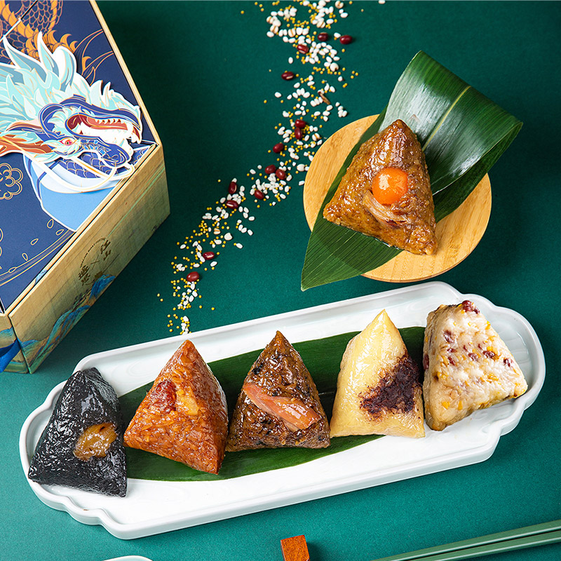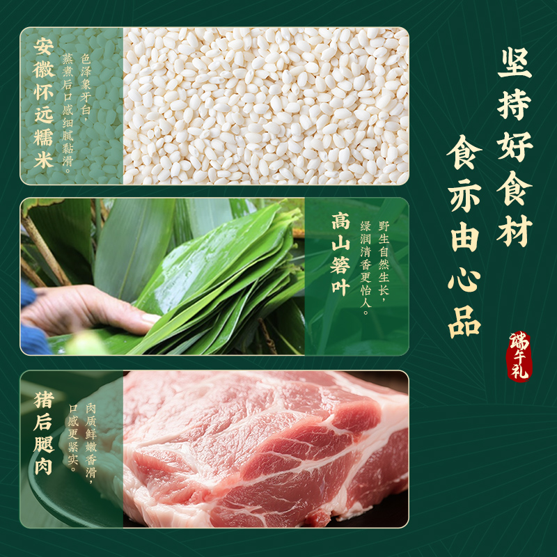 产品卖点:8味8粽+2味豆糕+两枚高邮特产咸鸭蛋,南咸北甜粽皆备,荤素搭配,营养均衡。