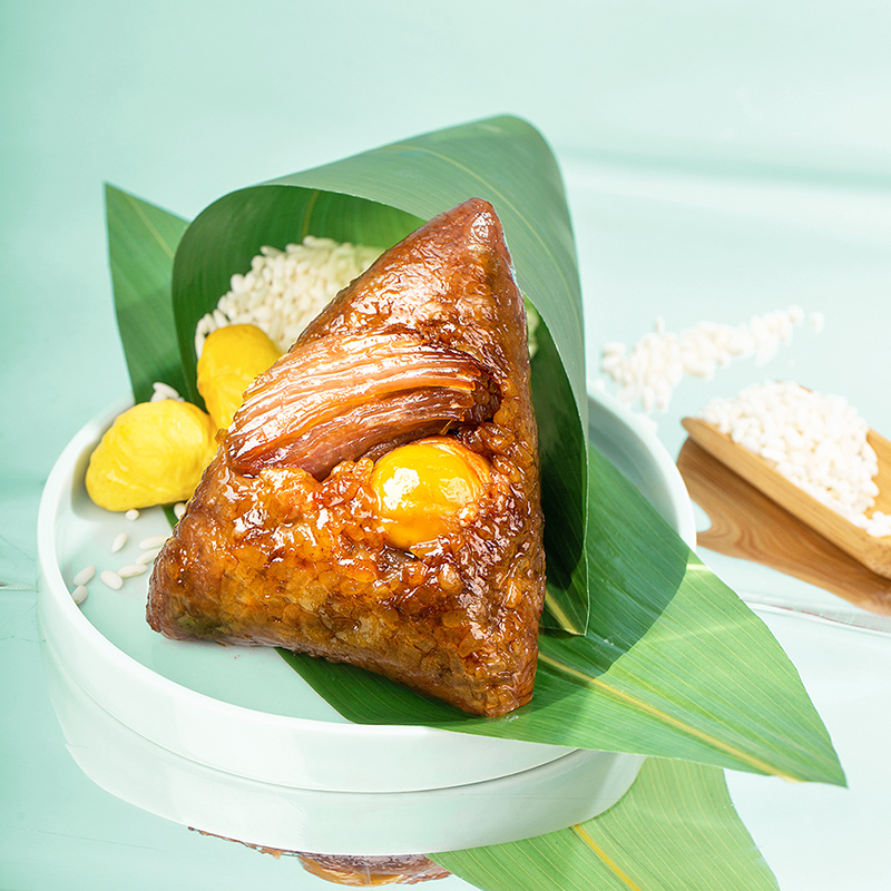 2、肉粽都采用选用肉质鲜嫩的猪后腿肉,咸香四溢,肉香融合糯香,直击味蕾。