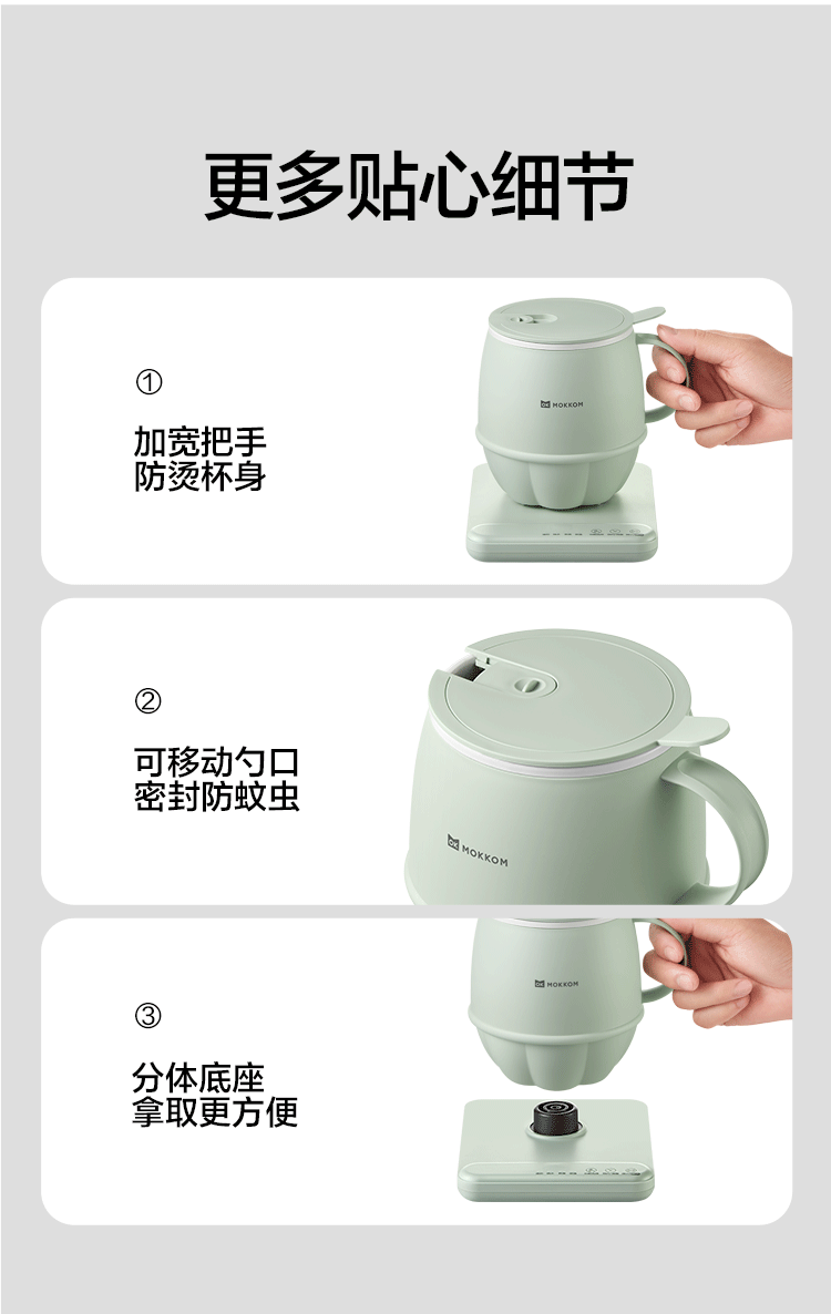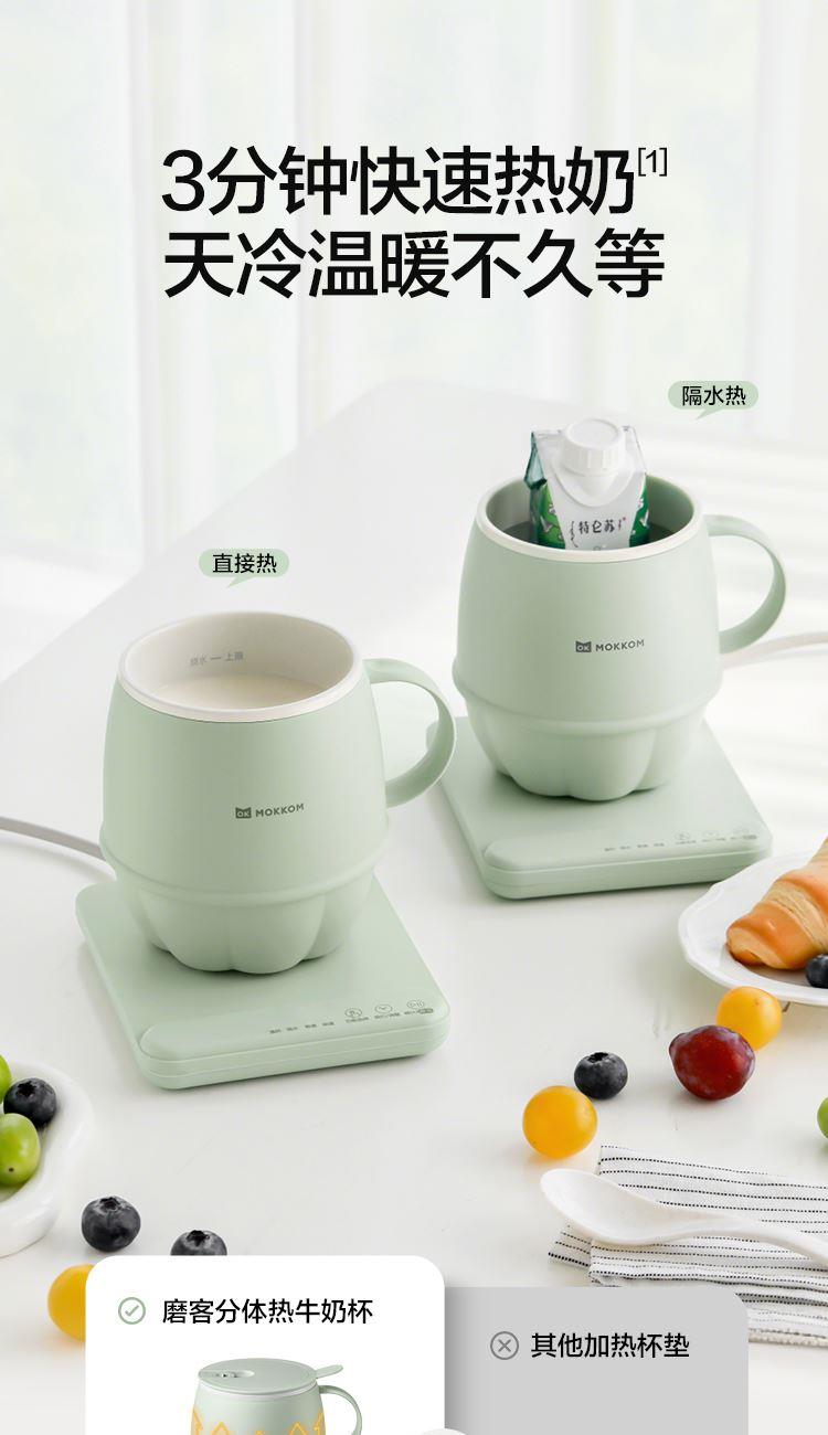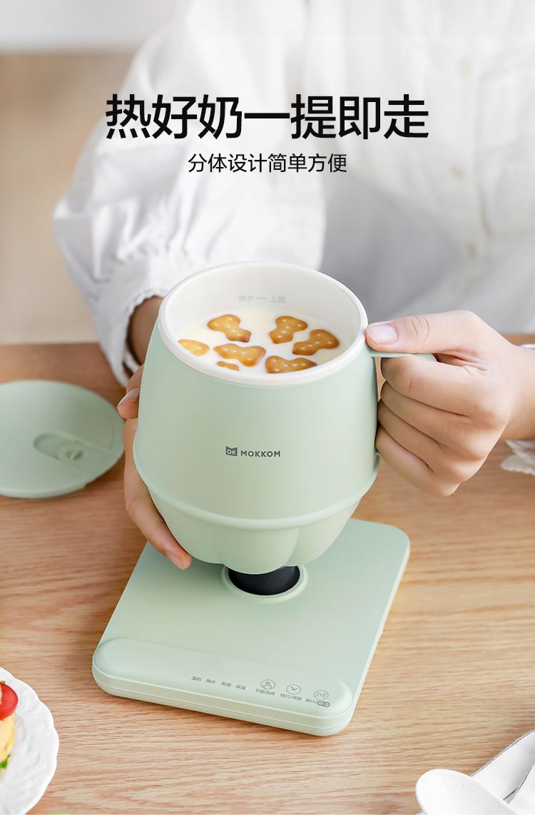 1.分体式设计简单方便,热好奶一提即走,免拔插头;