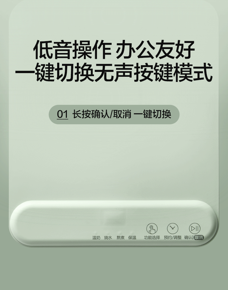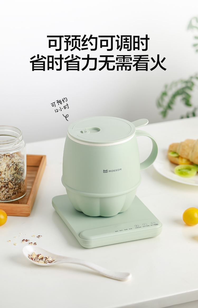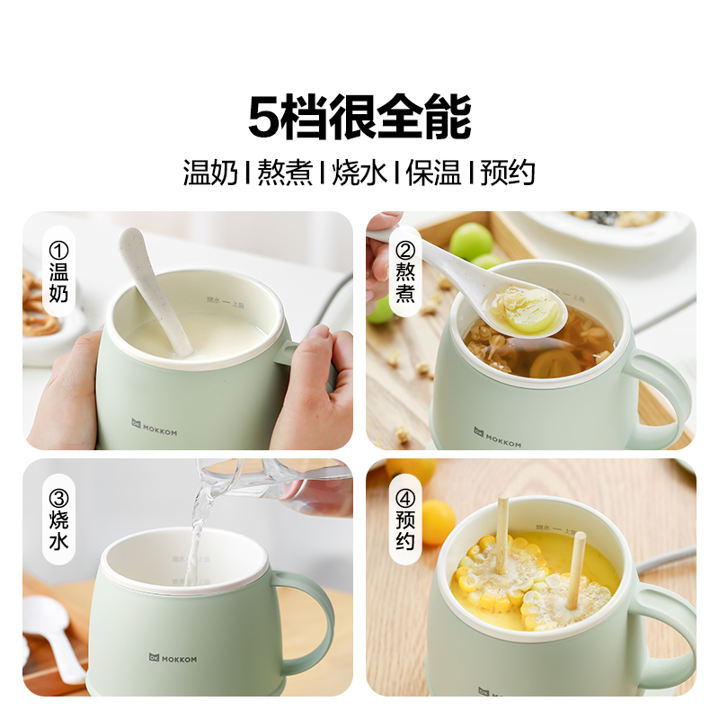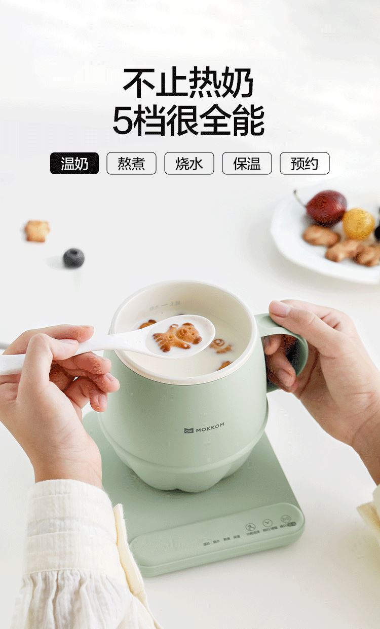 5.五档功能,温奶、熬煮、烧水、保温、预约;