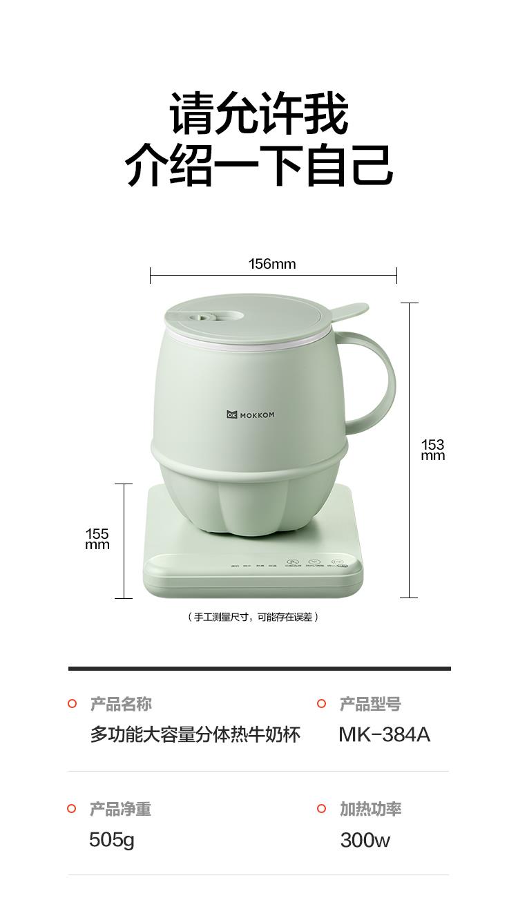 MOKKOM磨客多功能分体热牛奶杯豆蔻绿MK-384AL